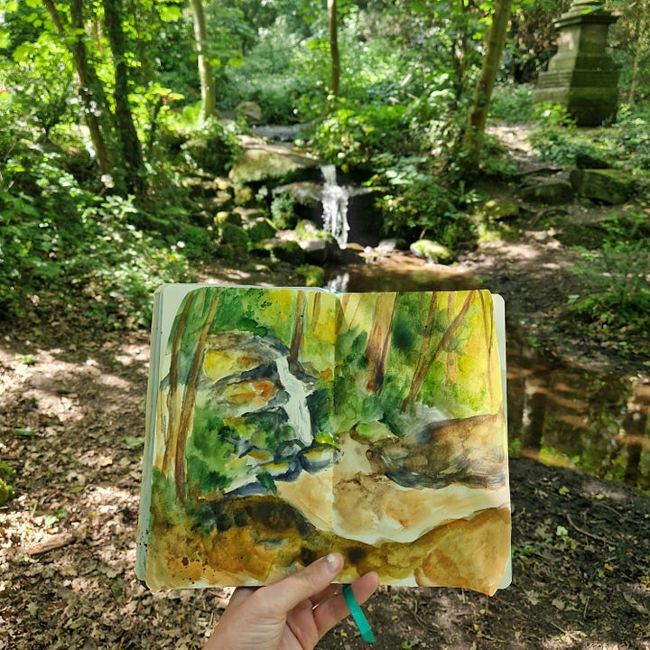 I am also working on an outdoor sketching workshop this year, hopefully in Meanwood Park in Leeds. This will be a guided walk, with stops for drawing in a few of my favourite spots. It will not have any specific tutoring but I am there to help anyone who needs any tips or advice and will give some prompts at each stop. Then we will finish the tour at the Three Cottages Cafe for some coffee, cake and some time to share work or chat about all things art.